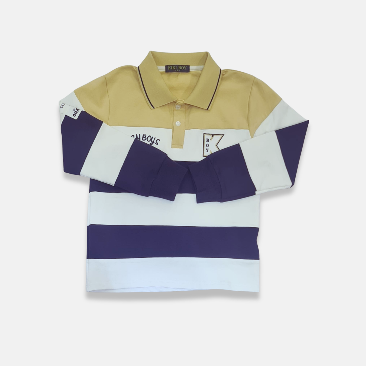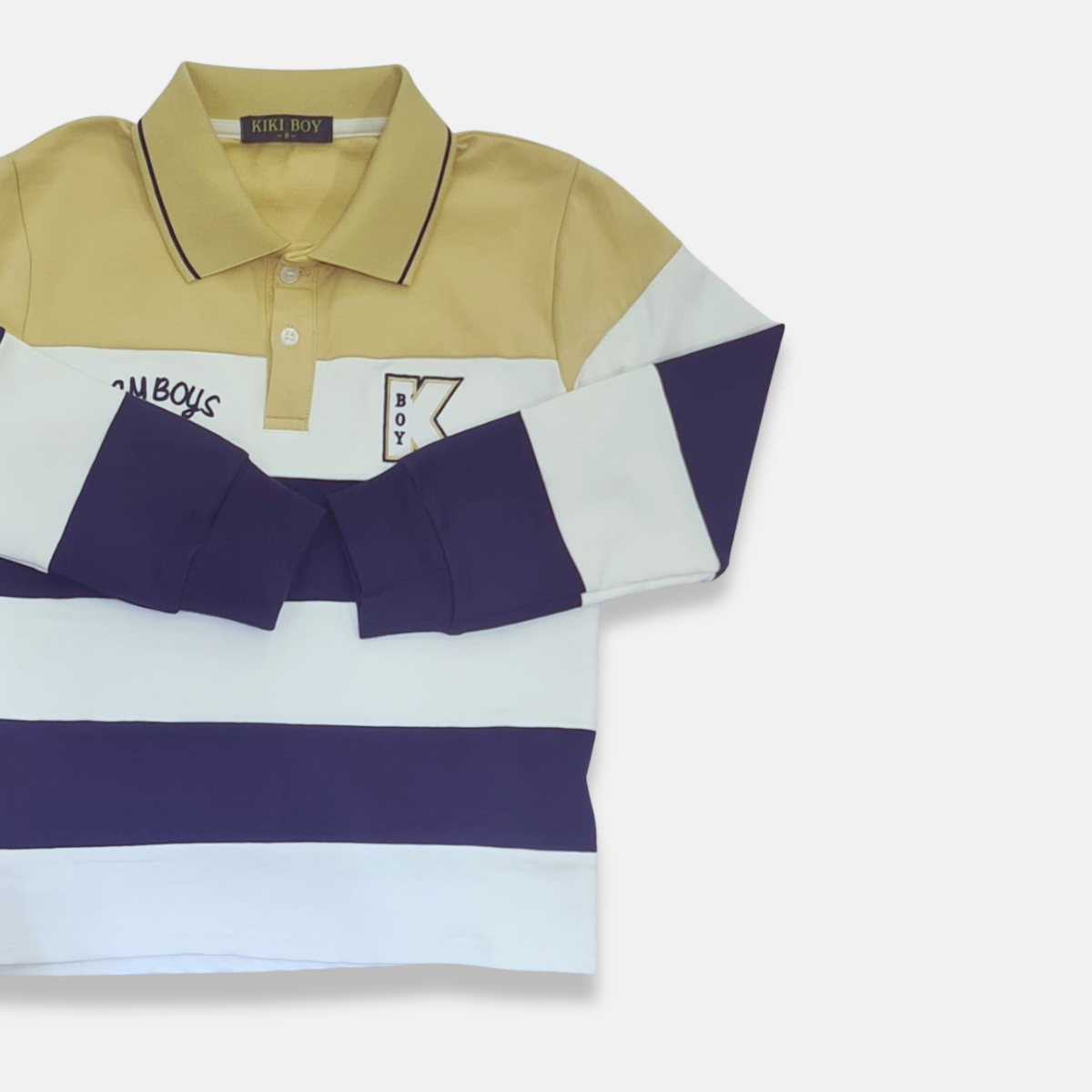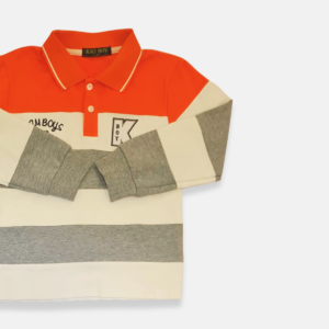 Camisa polo infantil masculina manga longa, perfeita para um visual moderno e arrumado. Confeccionada em tecido confortável e macio, possui gola polo com botões frontais que trazem um estilo clássico. O modelo conta com design em listras largas e combinação de cores modernas, além de detalhe bordado no peito que valoriza a peça.