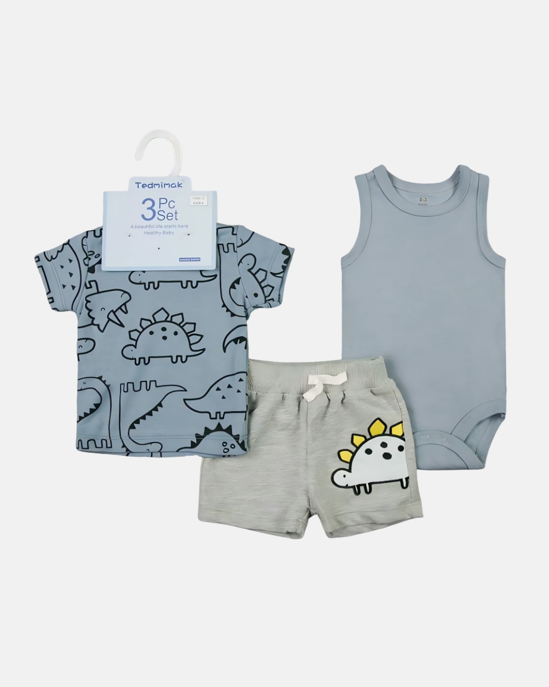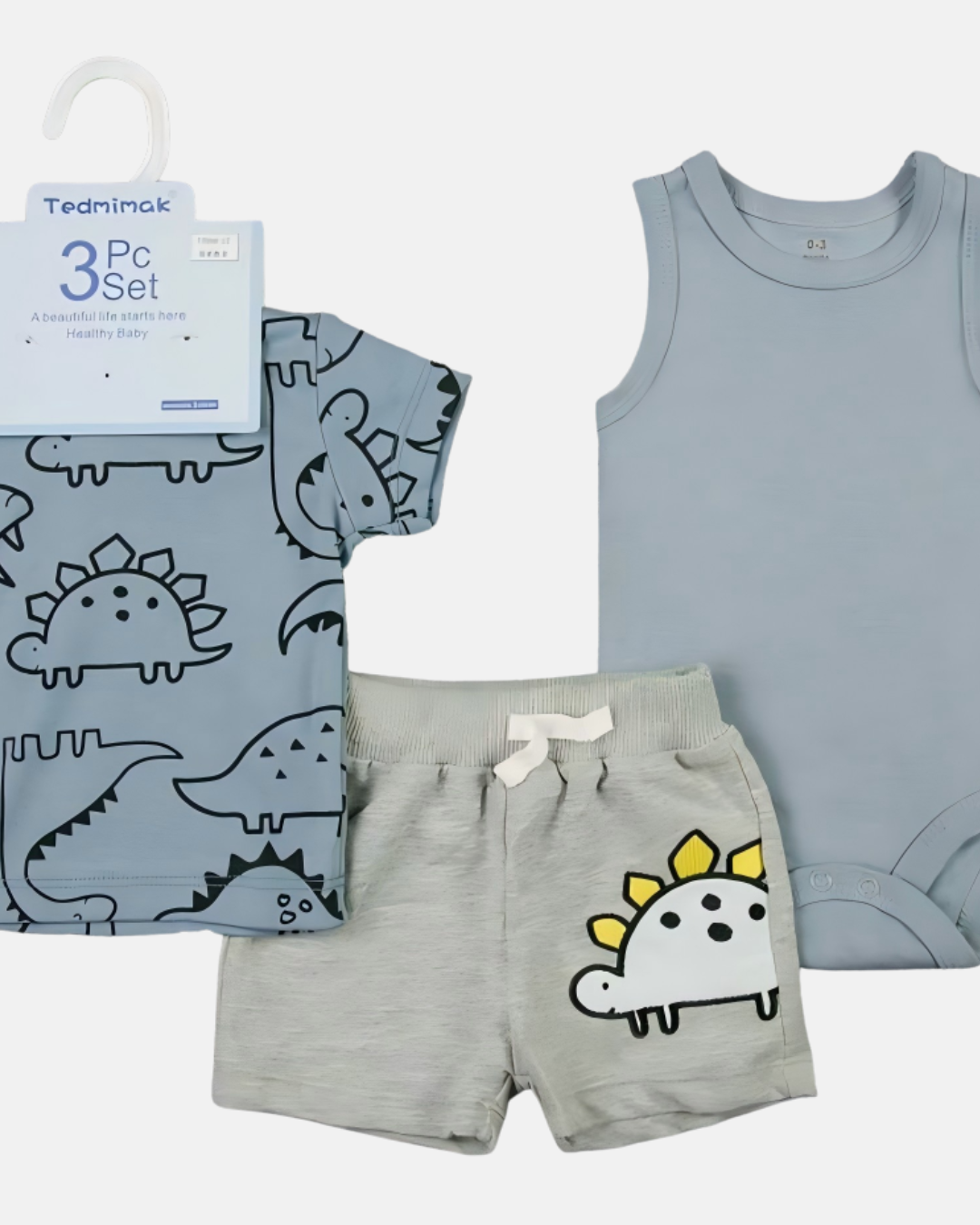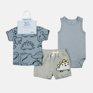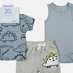 Esse kit com 3 peças é perfeito para deixar o seu bebê confortável e cheio de estilo em qualquer ocasião. Com uma proposta moderna e divertida, o conjunto traz a temática de dinossauros em cores suaves, ideal para looks despojados e cheios de personalidade.
