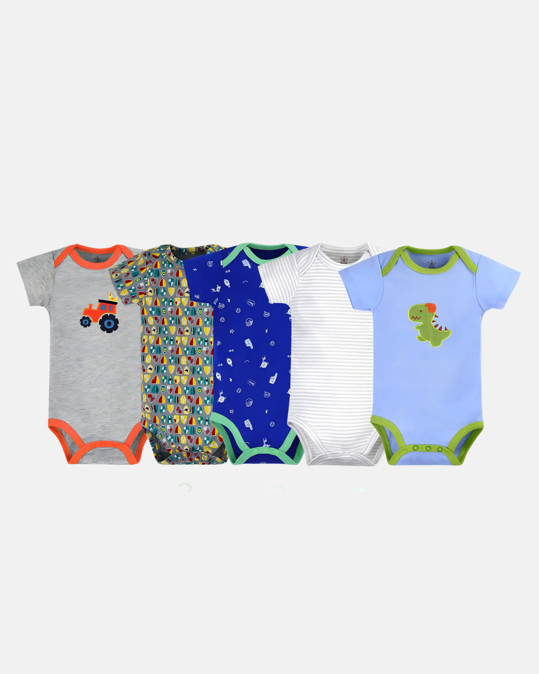 Encante-se com esse kit de body infantis, perfeito para deixar os pequenos confortáveis e cheios de estilo em qualquer ocasião. Composto por 5 peças, cada body traz uma estampa exclusiva e divertida, com cores modernas e detalhes que fazem toda a diferença.