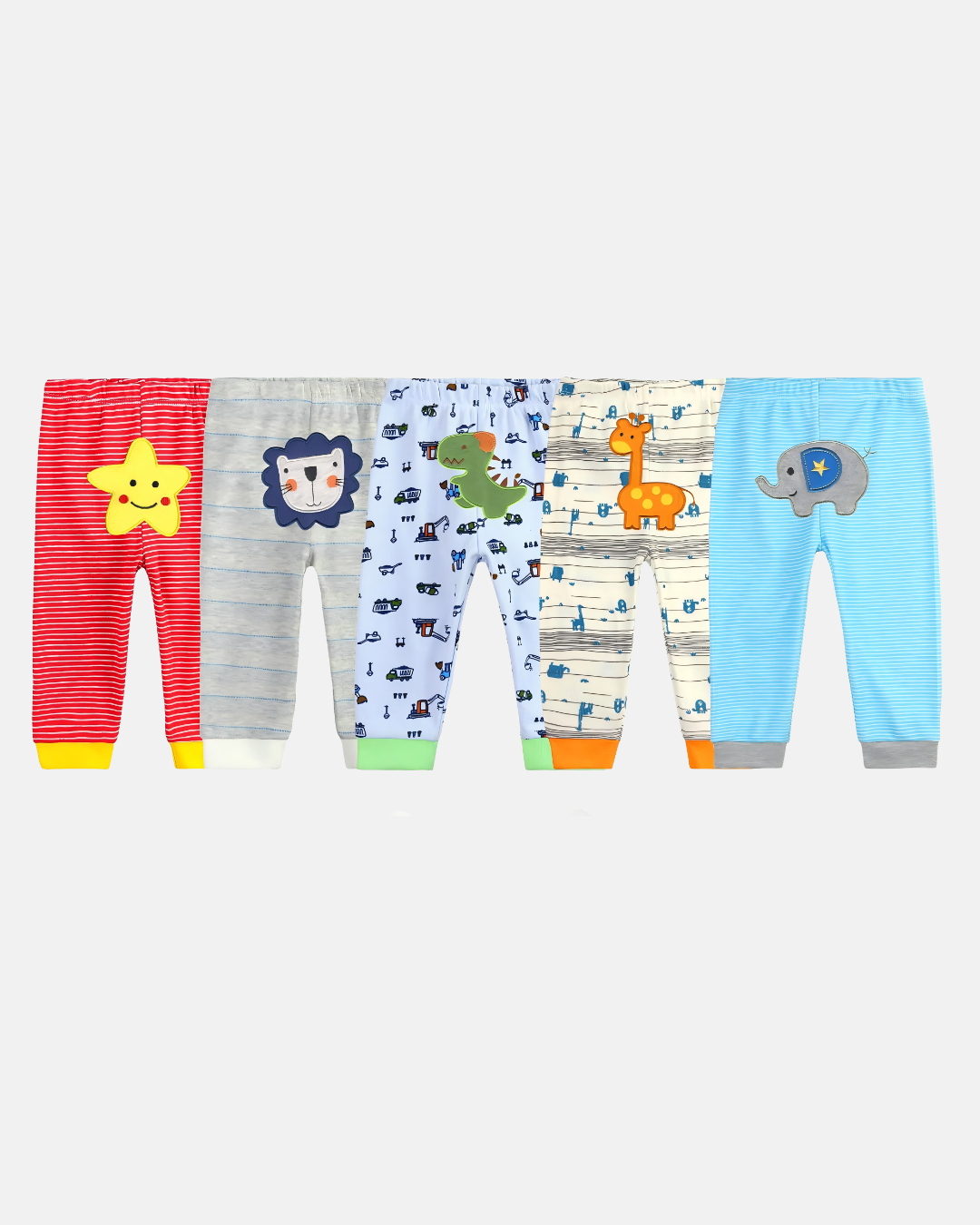 Este kit com 5 calças é perfeito para garantir praticidade no dia a dia do seu bebê, sem abrir mão do estilo. Com estampas lúdicas e cores alegres, cada peça traz um toque divertido e encantador, ideal para acompanhar todas as fases do pequeno.