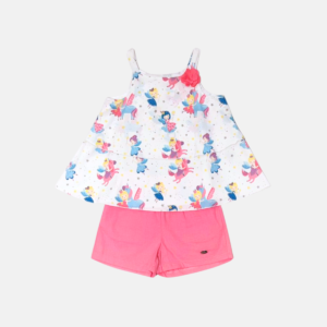 A blusinha possui acabamento delicado, com detalhes suaves e charmosos, enquanto o short/saia complementa o visual com muito estilo e liberdade para brincar. Ideal para ocasiões especiais ou para deixar o dia a dia mais lindo!