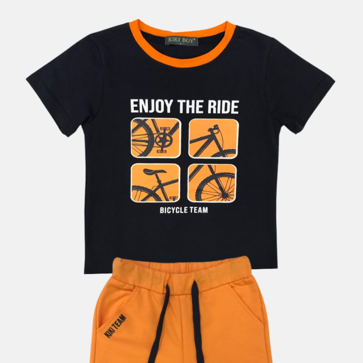 Conjunto Infantil Bicicleta Menino é ideal para pequenos aventureiros que adoram pedalar com estilo e conforto. Composto por camiseta e bermuda, esse conjunto traz estampas temáticas de bicicletas, estimulando a imaginação e o gosto por atividades ao ar livre.